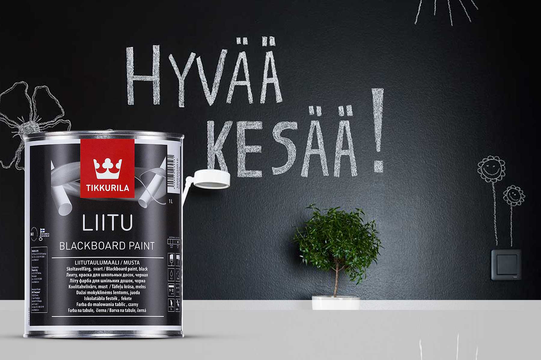 Грифельная краска с черным оттенком используется при обработке школьных досок, предметов мебели и крупногабаритных поверхностей.