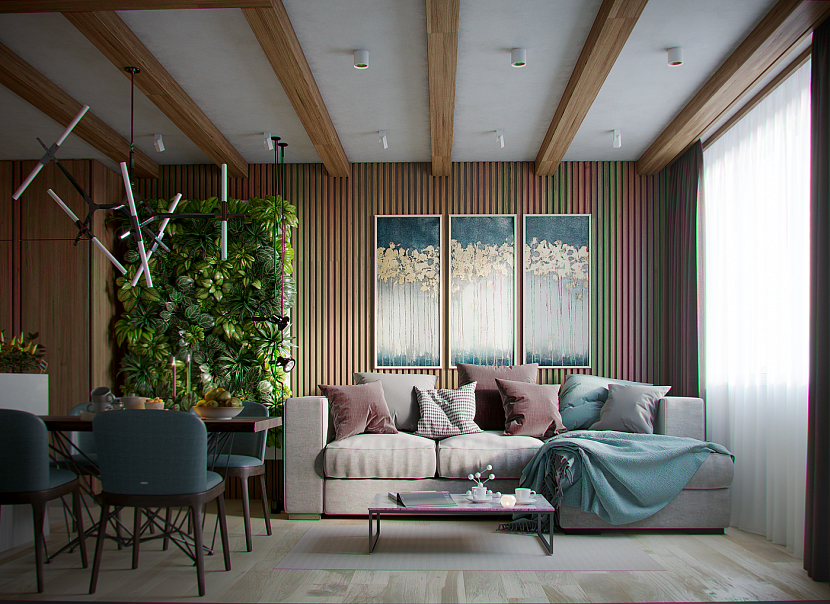 Декоративная штукатурка в эко стиле интерьера гостинойИсточник behance.net