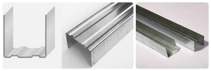 Потолочные — применяются для изготовления горизонтальных частей каркасов потолка. На каждой торцевой полке по 3 ребра жесткости. Монтируются на подвесы п-образного типа и входят в пазы UD, к которым фиксируются, после выравнивая при помощи нитей-подвесов.