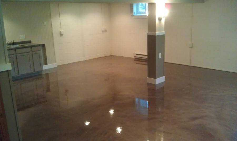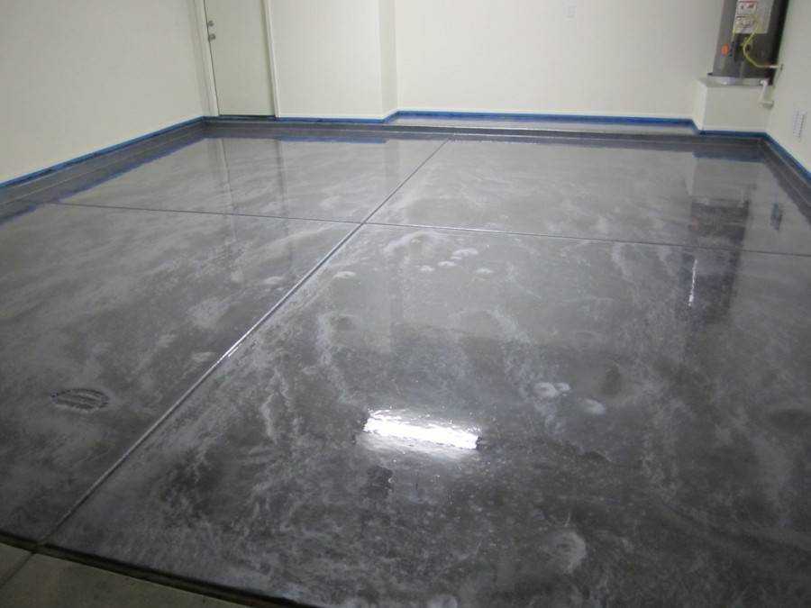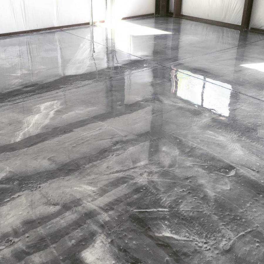 Если окрашивание производится по сырому основанию, например через 5 дней после заливки бетонного раствора, то эпоксидный состав проникает в бетон и укрепляет его. После этого не надо выравнивать пол, достаточно отшлифовать поверхность.
