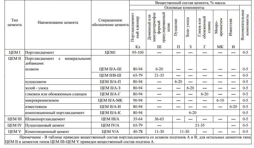 - ЦЕМ III, IV, V — не портландцементы (поэтому в данной статье не рассматриваются).