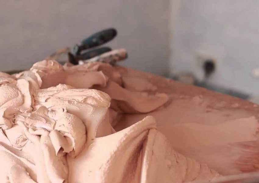 «Короед» можно делать как вертикальными, так и круговыми движениями затирки. Не прижимайте ее сильно, главное чтобы во время движения камешки не проскальзывали, а перекатывались. За счет перекатывания образуются канавки. Не забывайте периодически промывать затирку, в противном случае канавки затягиваются молочком, процесс приходится многократно повторять.