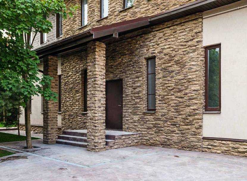 Отделка пенобетонных стен камнем выполняется только при наличии мощного фундамента. Дом, облицованный натуральным камнем, имеет необычайно привлекательный внешний вид. Существует множество цветов и фактур каменной отделки, которая отличается не только эстетичностью, но и практичностью, поскольку без особых хлопот прослужит максимально долго. Ненадолго омрачить выбор каменной облицовки может некачественный монтаж — отдельные камни могут отстать от пенобетона, что впрочем, легко поправимо.