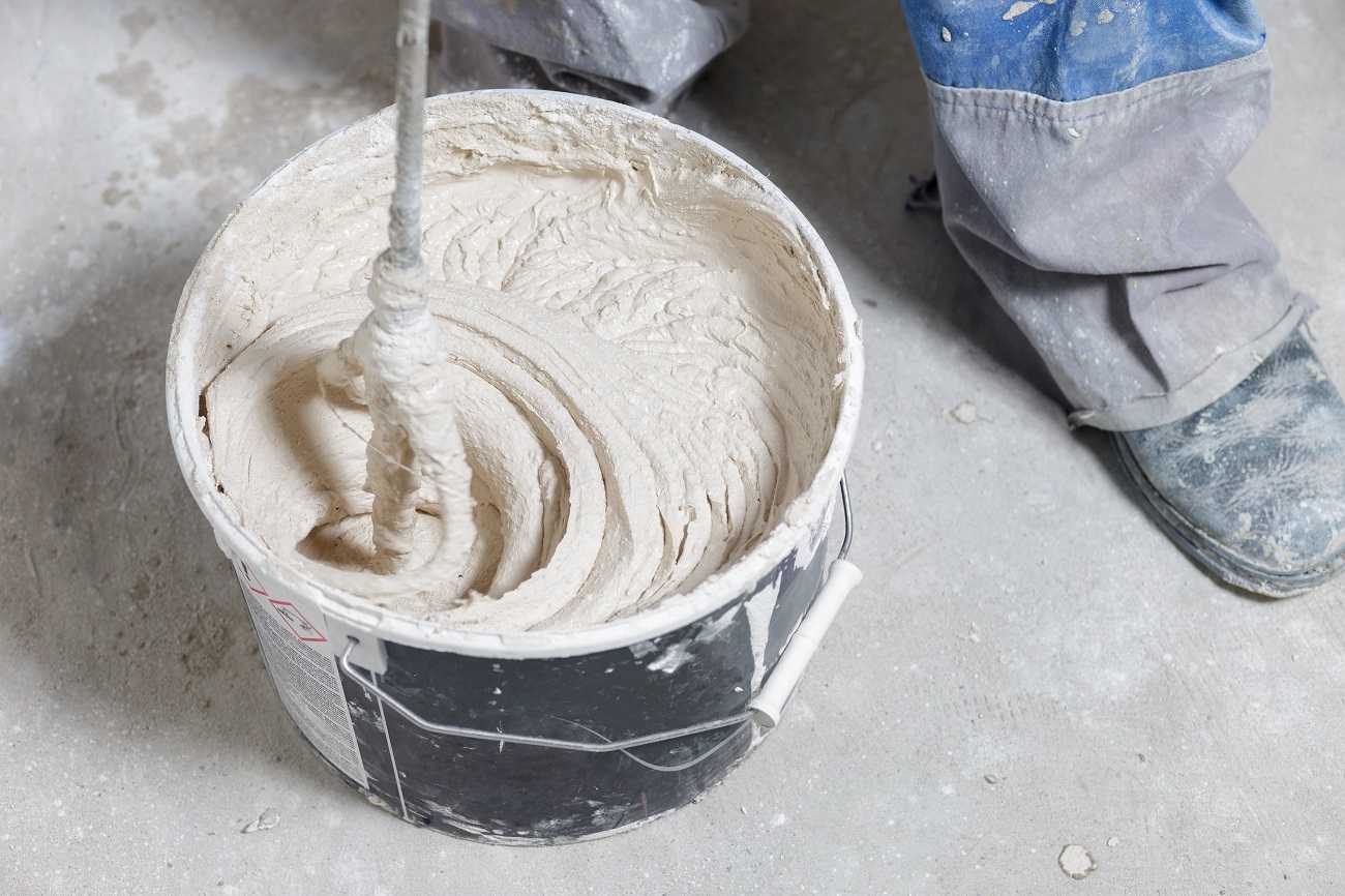 Для замешивания основной массы понадобится обычная шпаклевка (6 кг), вода (2 л) и клей ПВА (0,2 л). Сухую порошкообразную шпатлевку помещают в тару, постепенно вливают воду, размешивают. После добавляют клей ПВА и повторно перемешивают. При отсутствии такого клея допускается его замена на затирку для гипсокартона (пропорции остаются прежними 1: 1).