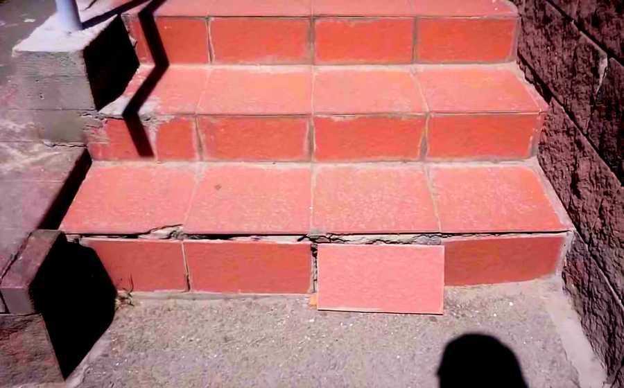 Почему под расчёску: Важно чтобы под плиткой не оставалось никаких пустот, иначе есть риск попадания туда влаги, которая при морозе будет разрушать поверхность, как например на этом изображении: