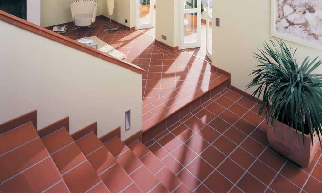 Глазурованная плита при наличии высокого процента зеркальности имеет высокие противоскользящие свойства. Такой материал применяют для лестниц внутри помещений и снаружи.