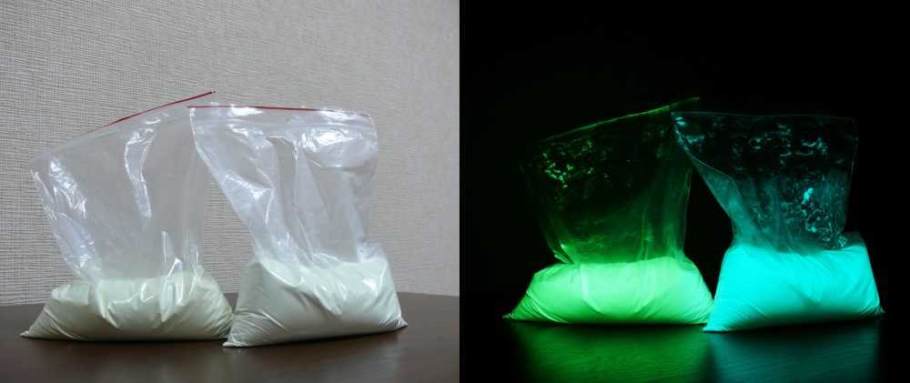- Добавить люминесцентный пигмент. Количество люминофора определит яркость краски и насыщенность свечения, показатель колеблется в пределах 15-50%. Оптимальная доля пигмента — 30%.