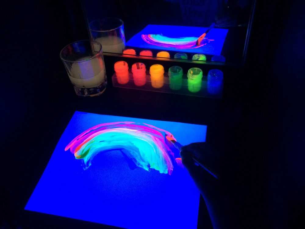 - создание произведений искусства — от светящихся в темноте картин до эффектного боди-арта (в последнем случае используют специальные красящие составы, отвечающие ряду гигиенических норм).