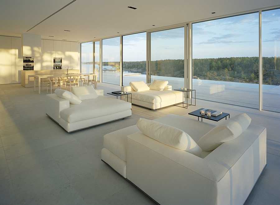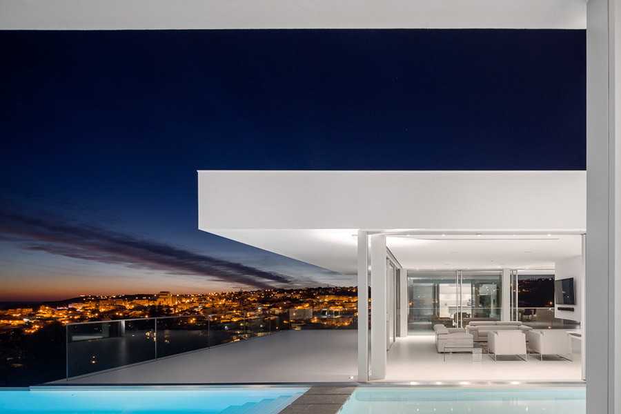 Одетый в нетронуто белое интерьер и большие стеклянные окна от пола до потолка убеждают, что линия между помещением и очаровательным пейзажем за окном расплывается где-то вдали. Восхитительный панорамный бассейн и затонувшая наружная зала определённо заставит вас провести больше времени снаружи, нежели внутри дома.
