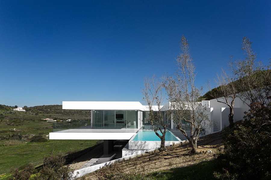 При проектировании этой удивительной современной резиденции архитектор Марио Мартинс столкнулся с рядом трудностей. Дом расположен на очень крутом участке в Лузе, Португалия. Одно из условий, наложенных местными властями, состояло в том, чтобы дом был построен на месте, занимаемом существующим зданием.