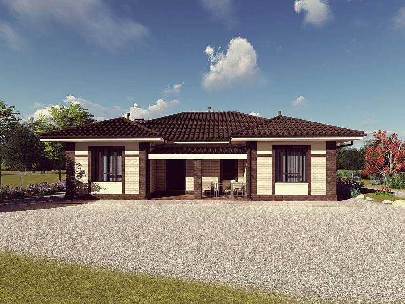 Для облицовки фасада одноэтажного дома используются деревянные панели, декоративная штукатурка, короед, простое окрашивание красками, приспособленными для уличных условий