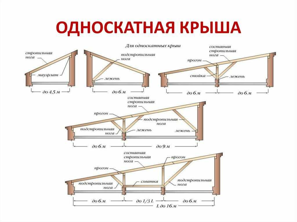Односкатной кровлей, где предусматривается опирание ската на противоположные стены разной высоты. Применяется при ширине пролета до 6 м.