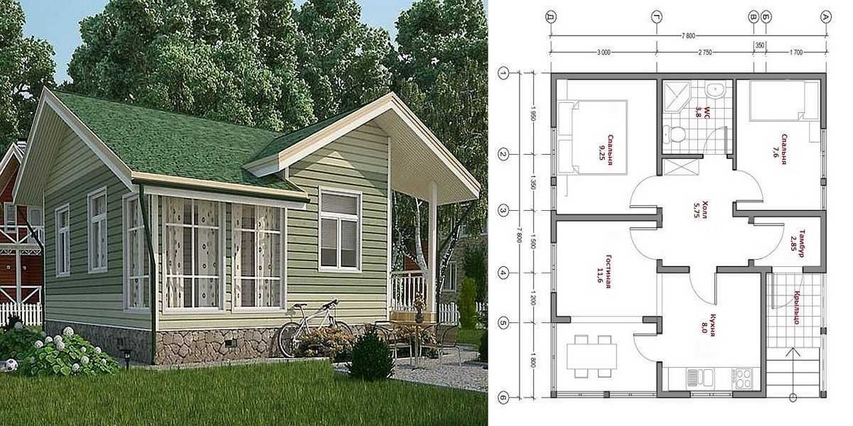 Одноэтажный дом 7*7,5 с пристроенной террасой