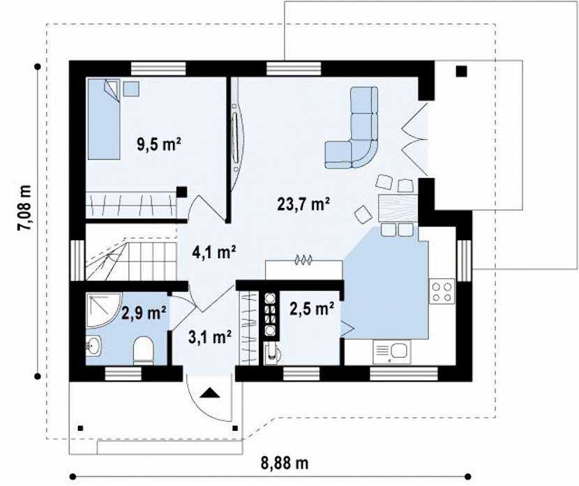 Проекты домов из газобетона 7 на 9 метров наиболее экономичны и доступны большей части заказчиков. Под них достаточно иметь небольшой участок земли, чтобы компактно разместить на нем уютный коттедж или дачу со всем необходимым для комфортного проживания. Основное преимущество дома малой площади – низкие расходы на строительство и содержание в будущем.