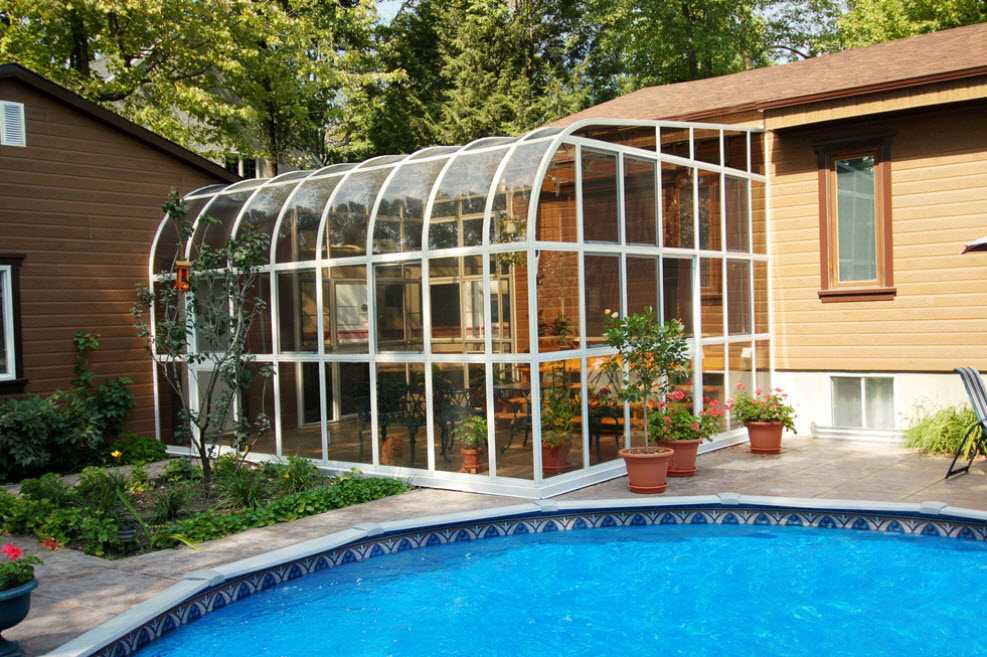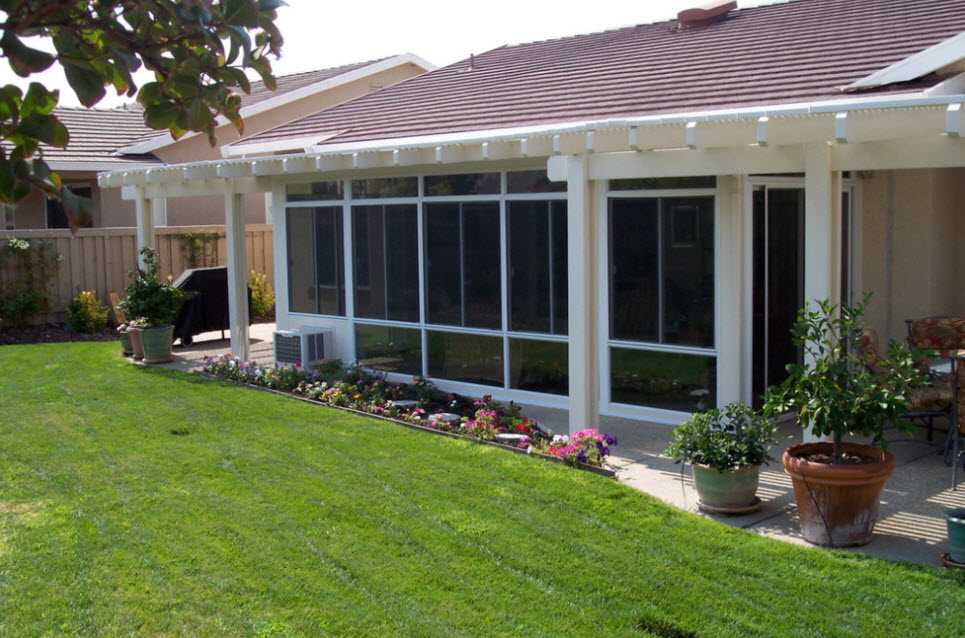 Этот процесс гораздо более трудоемкий и затратный. Помимо фундамента придется устанавливать опоры для кровли, стропильную систему, укладывать кровлю. При создании варианта круглогодичного использования придется устанавливать стены, не забывая про окна и двери для веранды.