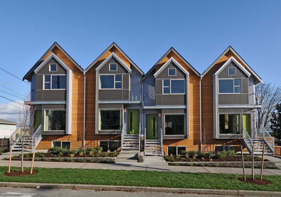 Весьма популярны в последнее время таунхаусы из СИП-панелей на 6 и более семей