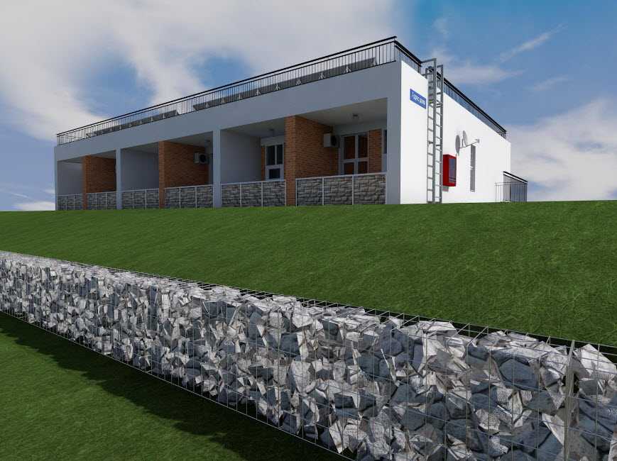 Конечно, в поселке можно встретить и более вместительные сооружения. Максимальная вместимость одного таунхауса – 6 семей. При этом каждая секция построек имеет, как общие и вспомогательные помещения, так и комнаты для отдыха. Стандартные проекты для первого этажа определяют площадь, составляющую порядка 60-70 квадратных метров, чего вполне достаточно для гаража и примыкающей к нему котельной.