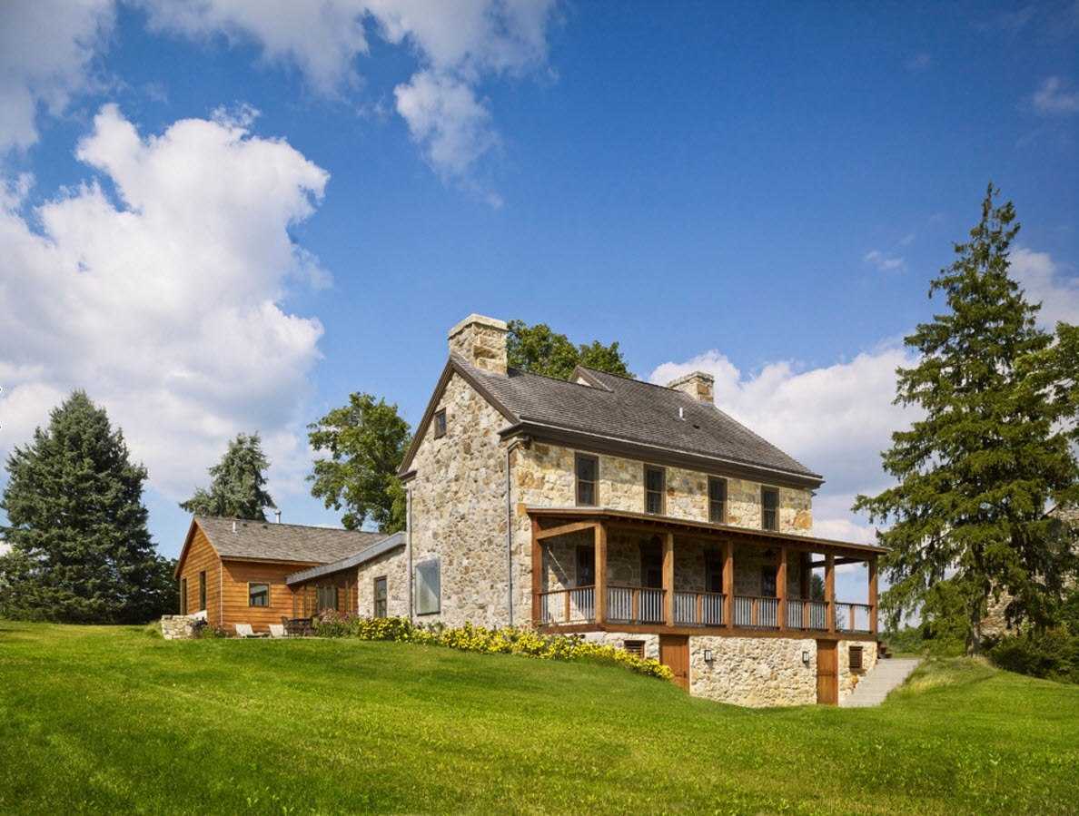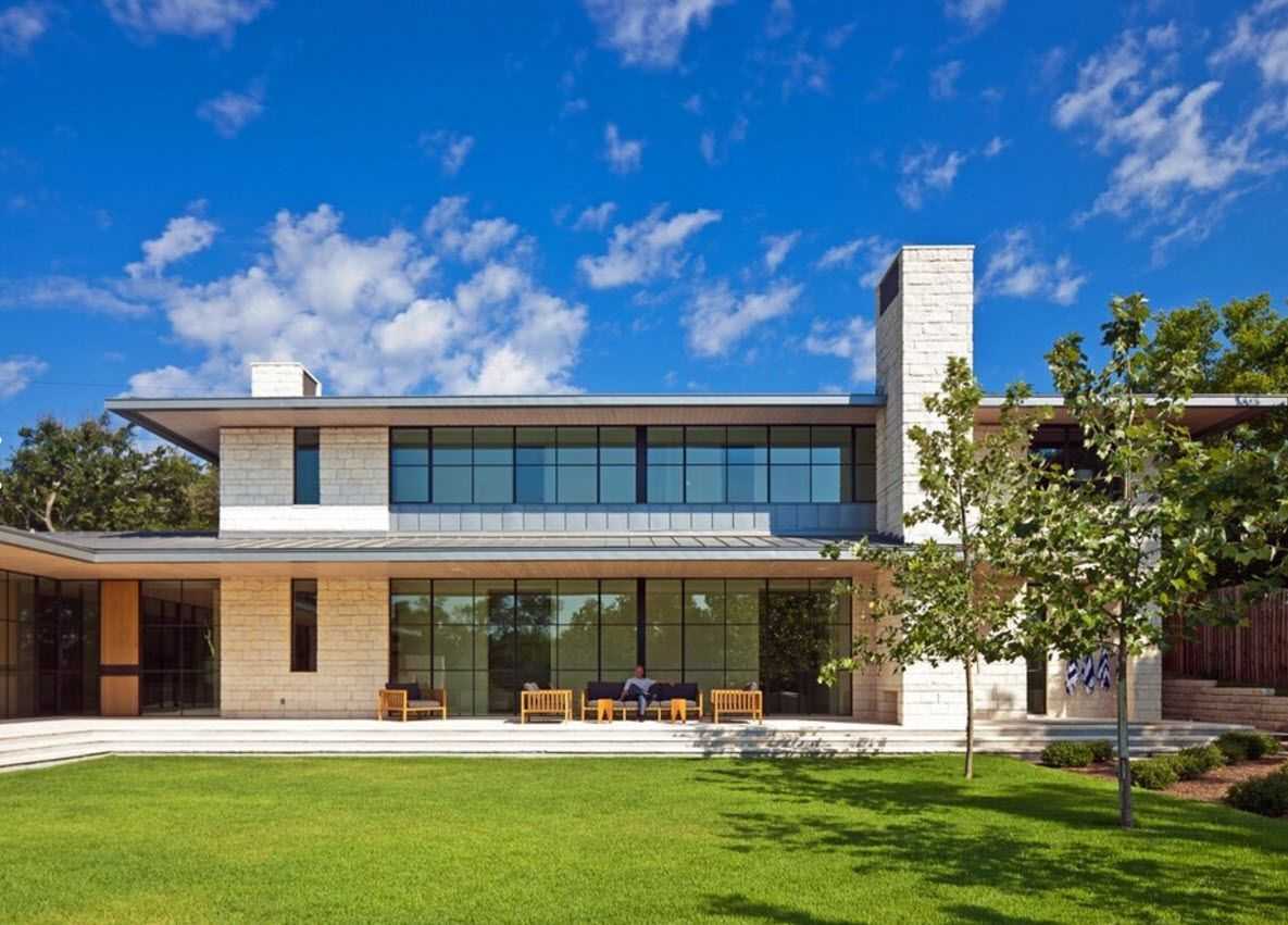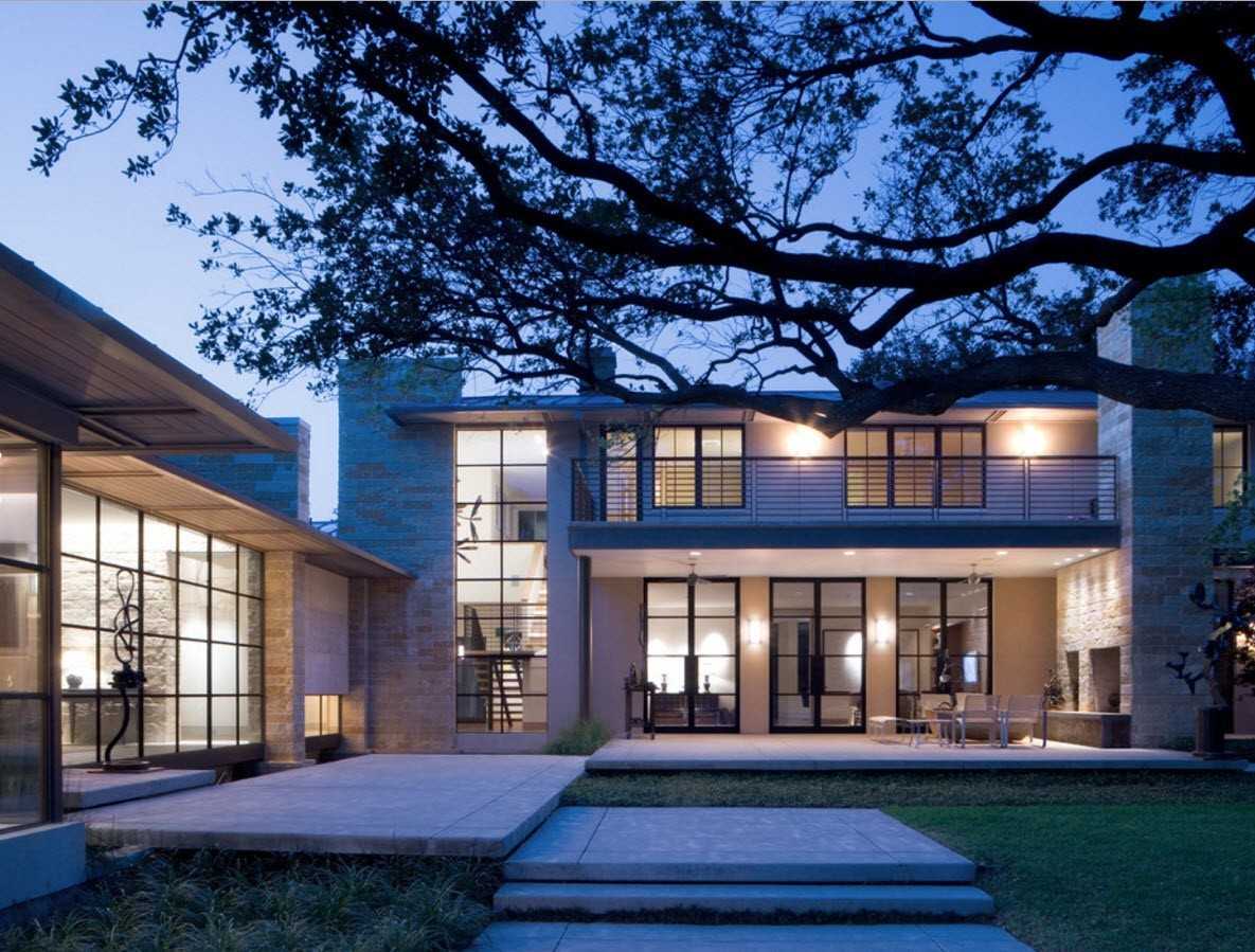 13. В отделке первого этажа — традиционный материал (облицовочный камень), и поэтому неожиданно удивляет обилие стеклянных стен на втором уровне.