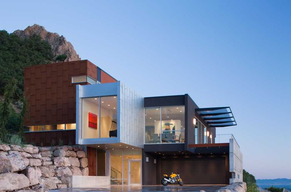 Таким образом создается невероятный эффект второго видимого пространства. Чтобы такое здание красиво выглядело снаружи, в качестве облицовки устраивают панорамное остекление фасадной части дома.