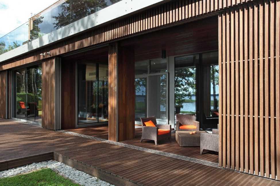 Дома, для дизайна которых избран минимализм, отличаются спокойными цветами, лаконичными формами и, по сути, абсолютным отсутствием декора – иными словами, лишних элементов просто нет. Для постройки применяют бетон, древесину, сталь и стекло: их комбинация дает предельно полезное использование свободной площади, избыток света и места. Заметим, благодаря этому получается солидная экономия в процессе постройки дома.
