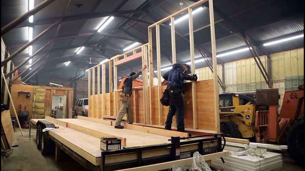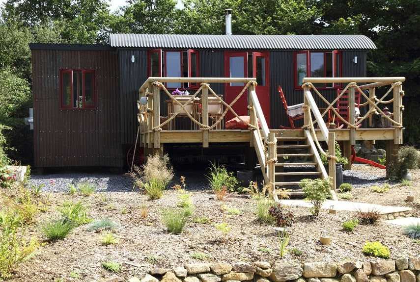 Выбирая мобильный домик на основе деревянного каркаса, легко получить миниатюрное жилье с уютным крыльцом, которое легко трансформируется в автомобильный прицеп.