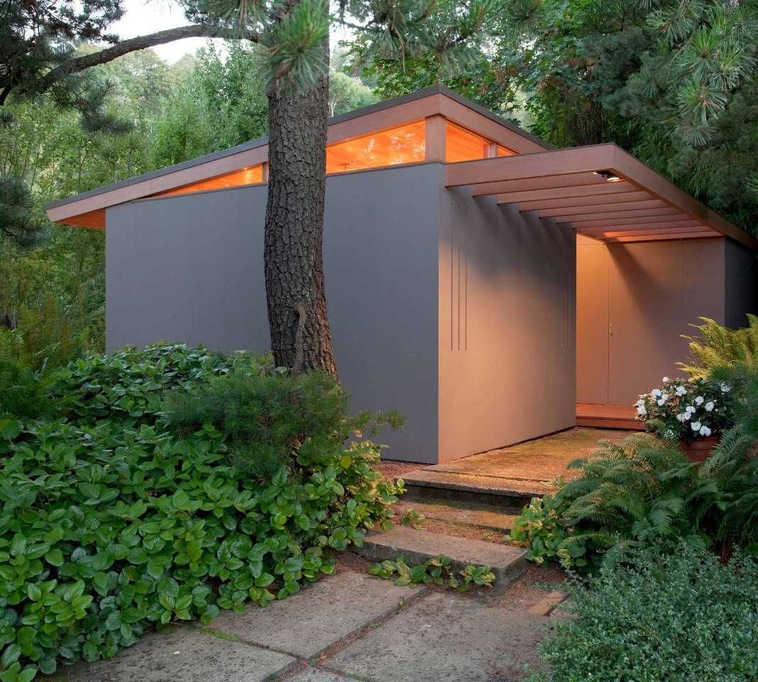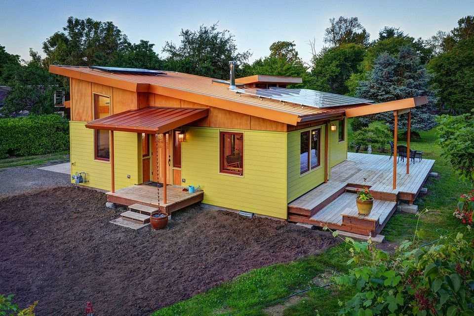 От наклонной задней стенки мини-дома потом отказались для упрощения и удешевления строительства.