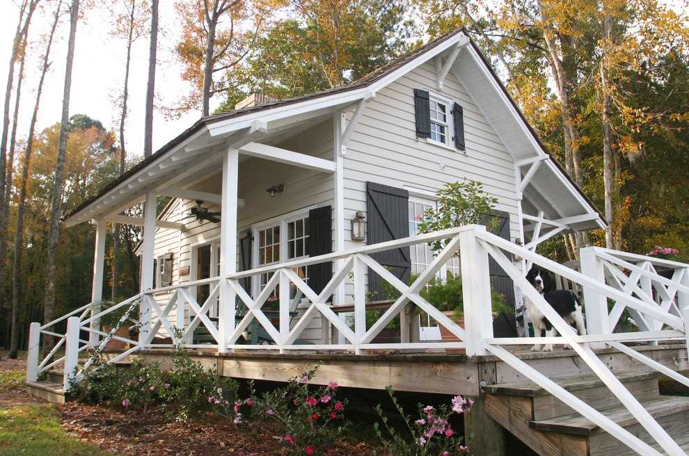 Дачный домик в стиле кантри придётся по вкусу многим, кто желает приобщиться к природе и простоте сельских укладов, поэтому такие проекты передают безграничный уют и гостеприимство хозяев. В оформлении используются светлые и пастельные тона, наблюдается незначительная грубость в декоре, а также характерное отсутствие современной техники и оборудования. Это как раз то, что и требовалось для отдыха вдали от города и кардинальной смены обстановки.