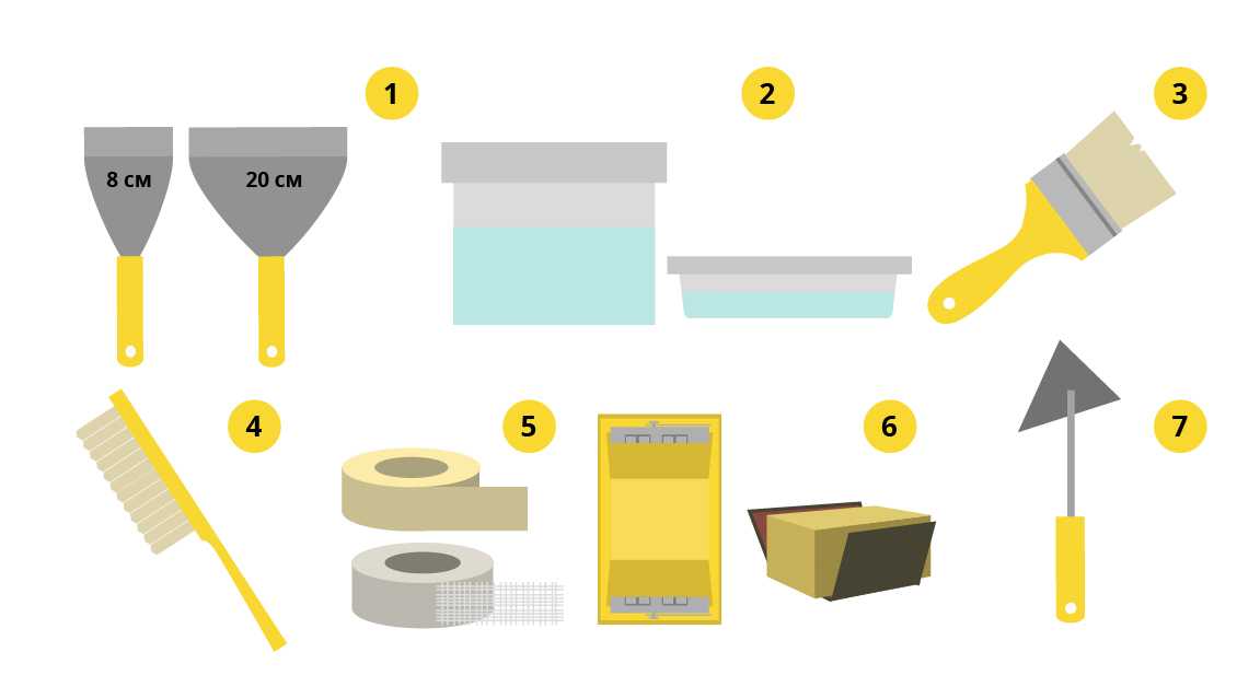- Сетку или ленту придавливают с помощью шпателя и наносят сверху еще один слой.