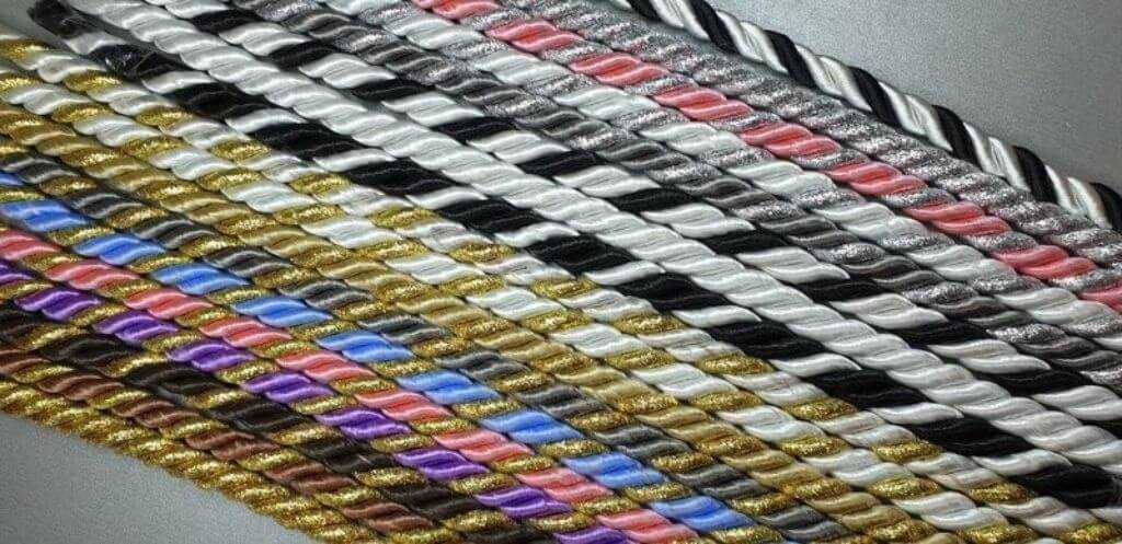 - С помощью клеевого термопистолета. В этом случае нужно следить, чтобы клей при установке не касался полотна. При таком монтаже ограничений к толщине и виду шнура нет, но снять его, не повредив, уже не получится. С учетом того, что подобный кантик буквально притягивает к себе пыль — этот метод, хоть и более надежен, но менее удобен с точки зрения эксплуатации.