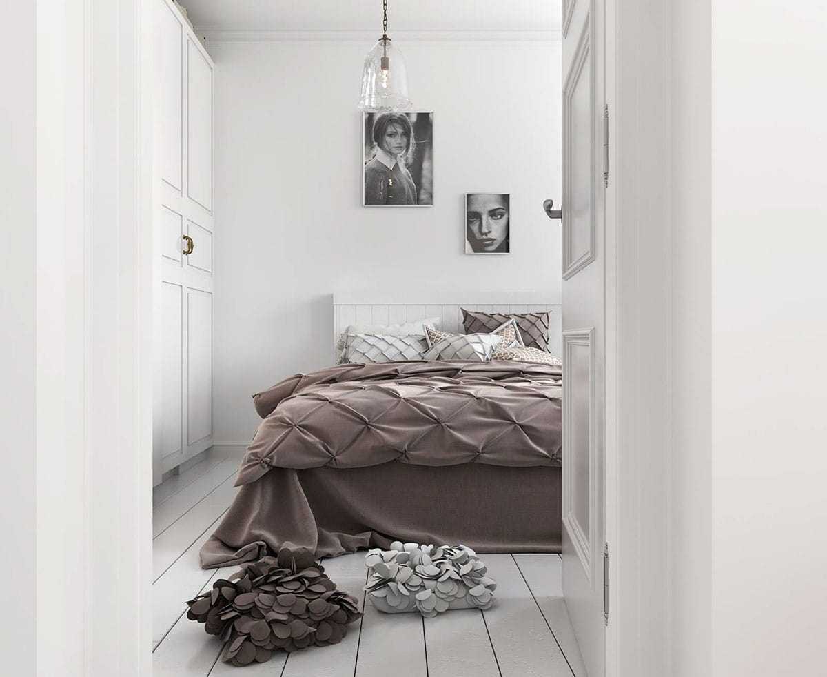 Скандинавский стиль очаровывает этническим интерьером. Подойдёт для людей, ценящих спокойствие, умиротворенность, домашний комфорт. Для оформления спальни в данном стилистическом направлении главная роль отводится изобилию белого цвета. Он может выглядеть полноценно как сам по себе, так и стать отличным фоном для более ярких сочетаний. Актуальными вариантами признаны спальни в чёрно-белых, бело-зелёных, бело-голубых оттенках.
