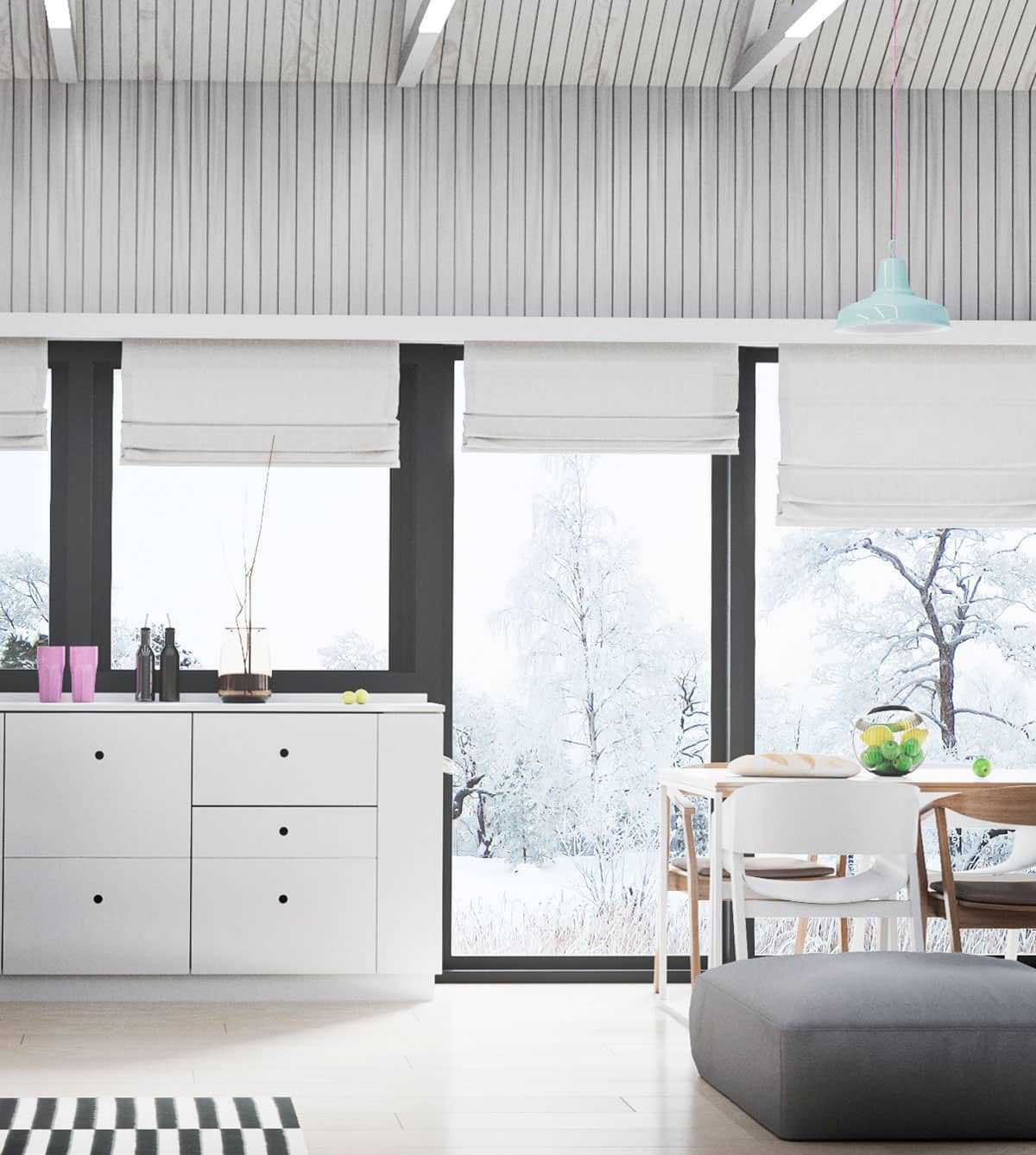 Темные окна и двери в светлом интерьере — это беспроигрышная игра на контрасте