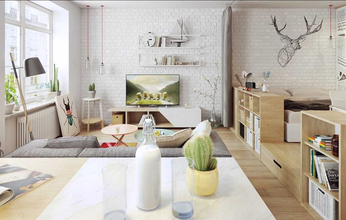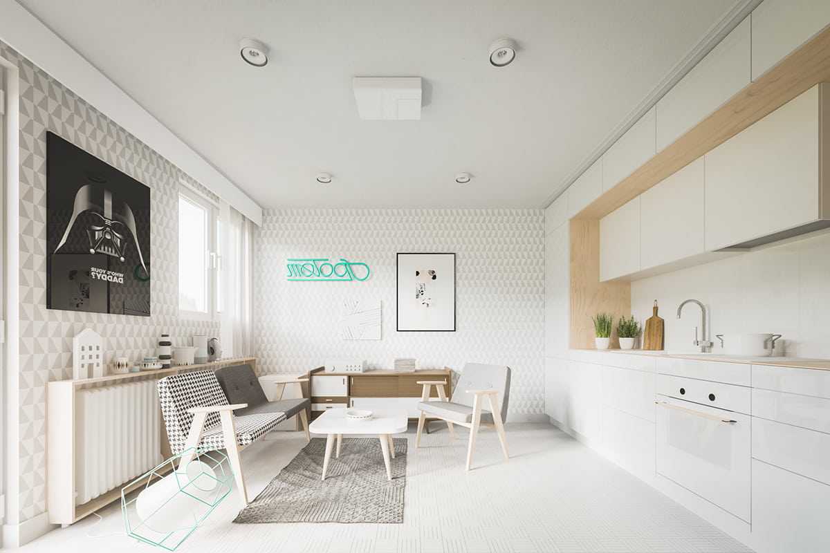 Интерьер в скандинавском стиле в белых тонахИсточник Дизайн гостиных