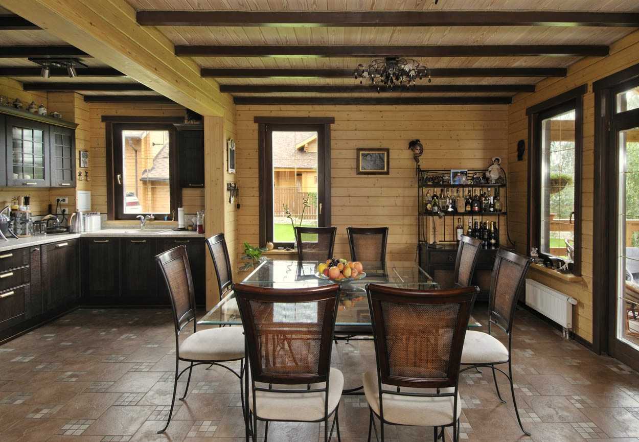 Для красоты, дополнительного естественного освещения или для экономии пространства (в домах небольшой площади) возможно даже возведение стеклянных конструкций в качестве перегородок, они холодные, но не отнимают пространство и пропускают свет. Такие необычные решения подходят современным интерьерным стилям наподобие эко-направления, которое тоже вполне уместно в доме из бруса.