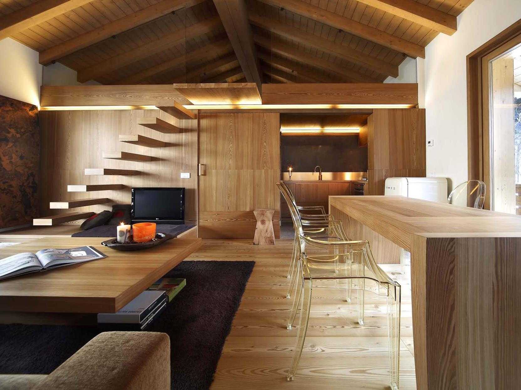 Делайте обшивку дозированно: украшайте доской отдельные стены или их части, сделайте деревянным пол или установите доски на потолок. Такой декор сделает домашнюю обстановку свежей и не вынудит вас выбросить все деньги из кошелька.