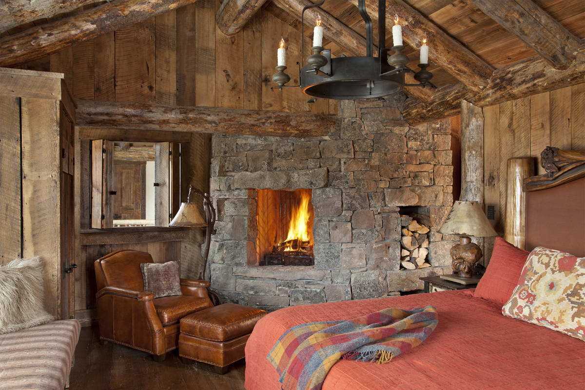 Для бревенчатого домика важно, чтобы в нем не было никаких слишком современных деталей. Если вы устанавливаете современную технику, то ее рекомендуется каким-либо образом декорировать, чтобы провода не торчали на фоне бревен ручной рубки