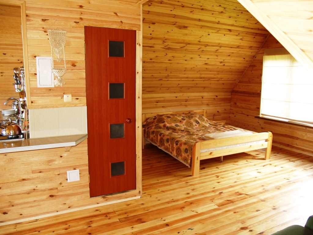 - сплошную стену из бруса небольшой толщины с желаемой обшивкой – из листов ДВП, гипсокартона, фанеры, имитации бруса и без обшивки;