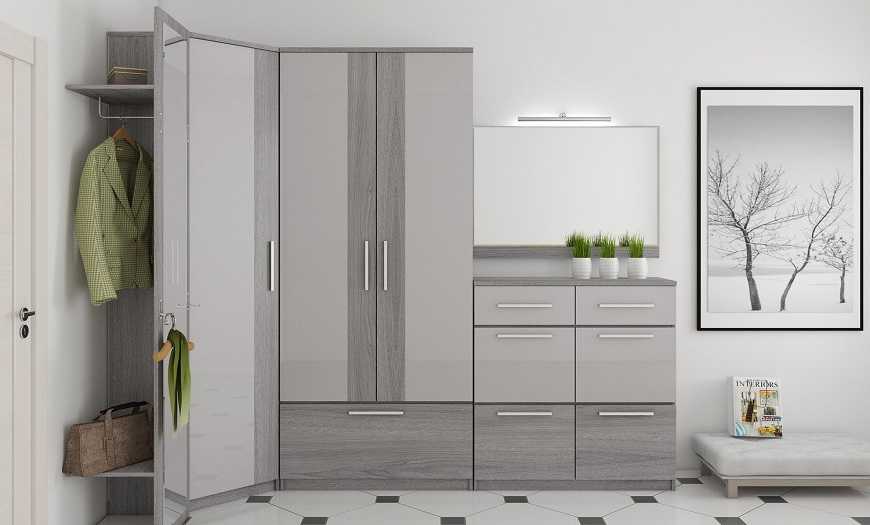 Тип шкафа (встроенный или корпусный) подбирается с учетом схемы планировки тамбура. Если в комнате предусмотрена ниша, а переезд в другую квартиру не ожидается, лучше выбрать интегрированный вариант мебели.