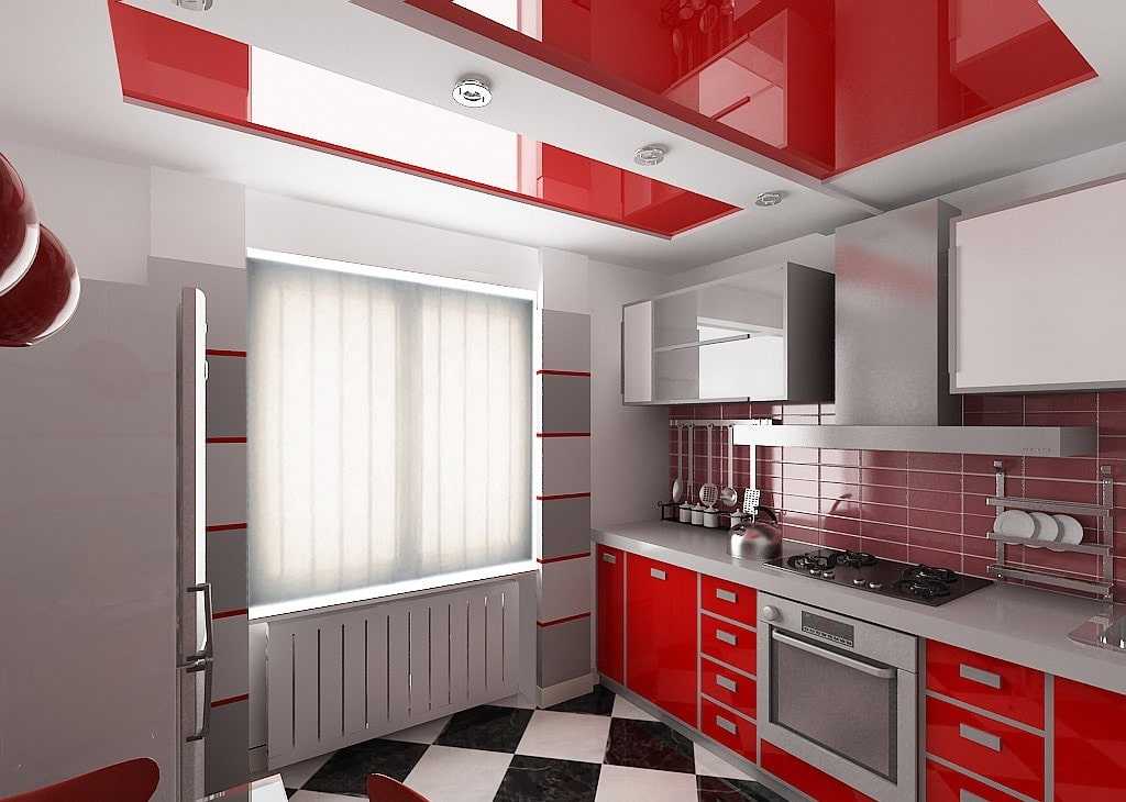 В глянце потолок выглядит ярче, с матовой поверхностью — сдержаннее и спокойнее. Более тёмный вариант красного — бордовый или винный. Выглядит благородно и изысканно.