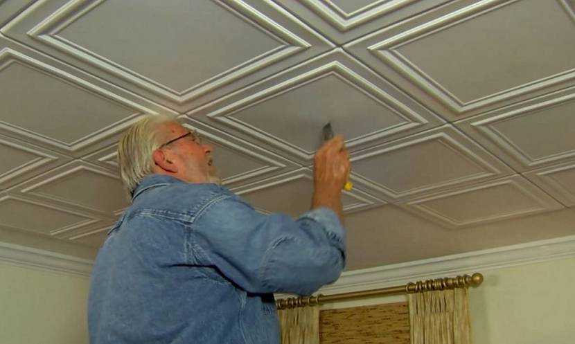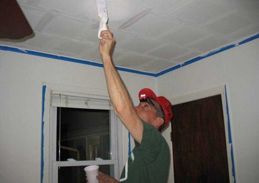 Покраска потолочной плитки из пенопласта водоэмульсионной краской выполняется по следующей схеме: