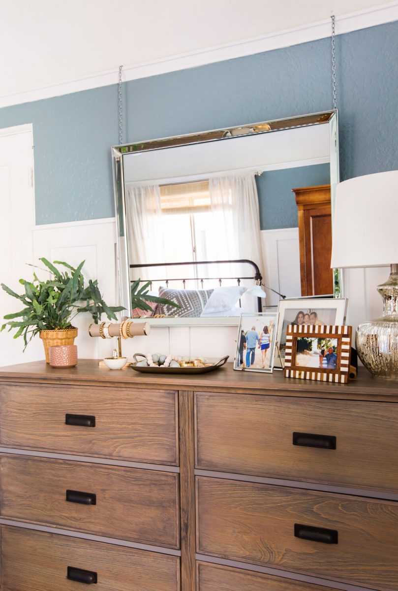 - Разместите по бокам от кровати большие трюмо, данный прием также применяется для зрительного расширения комнаты.