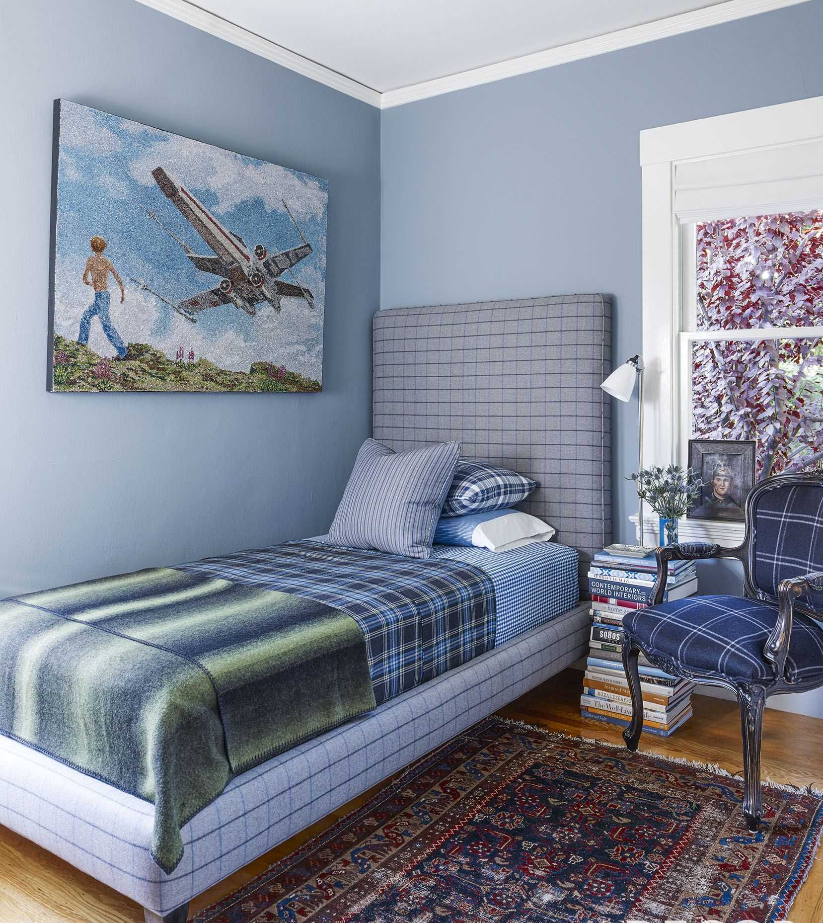 Стена за кроватью в маленькой спальне обладает наибольшим потенциалом. Правильно спроектированная, он добавит характер и оригинальность всему интерьеру и решит проблему подавленности. Вы можете выбрать впечатляющие настенные росписи, декоративные кирпичи или просто красочные краски.