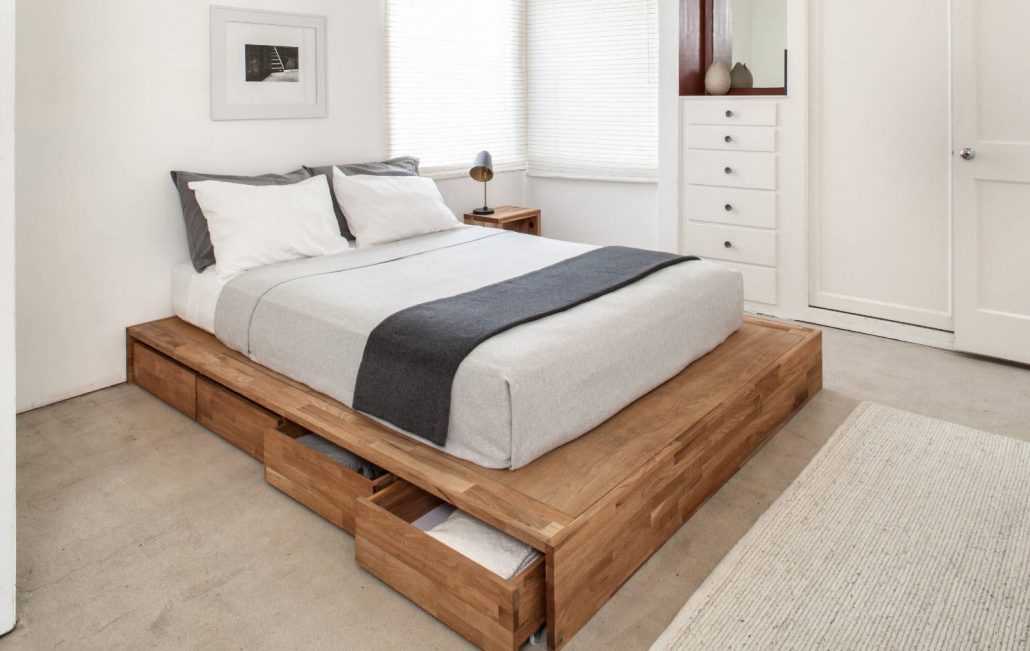 - Выбирайте кровать с выкатными ящиками или коробом для белья.