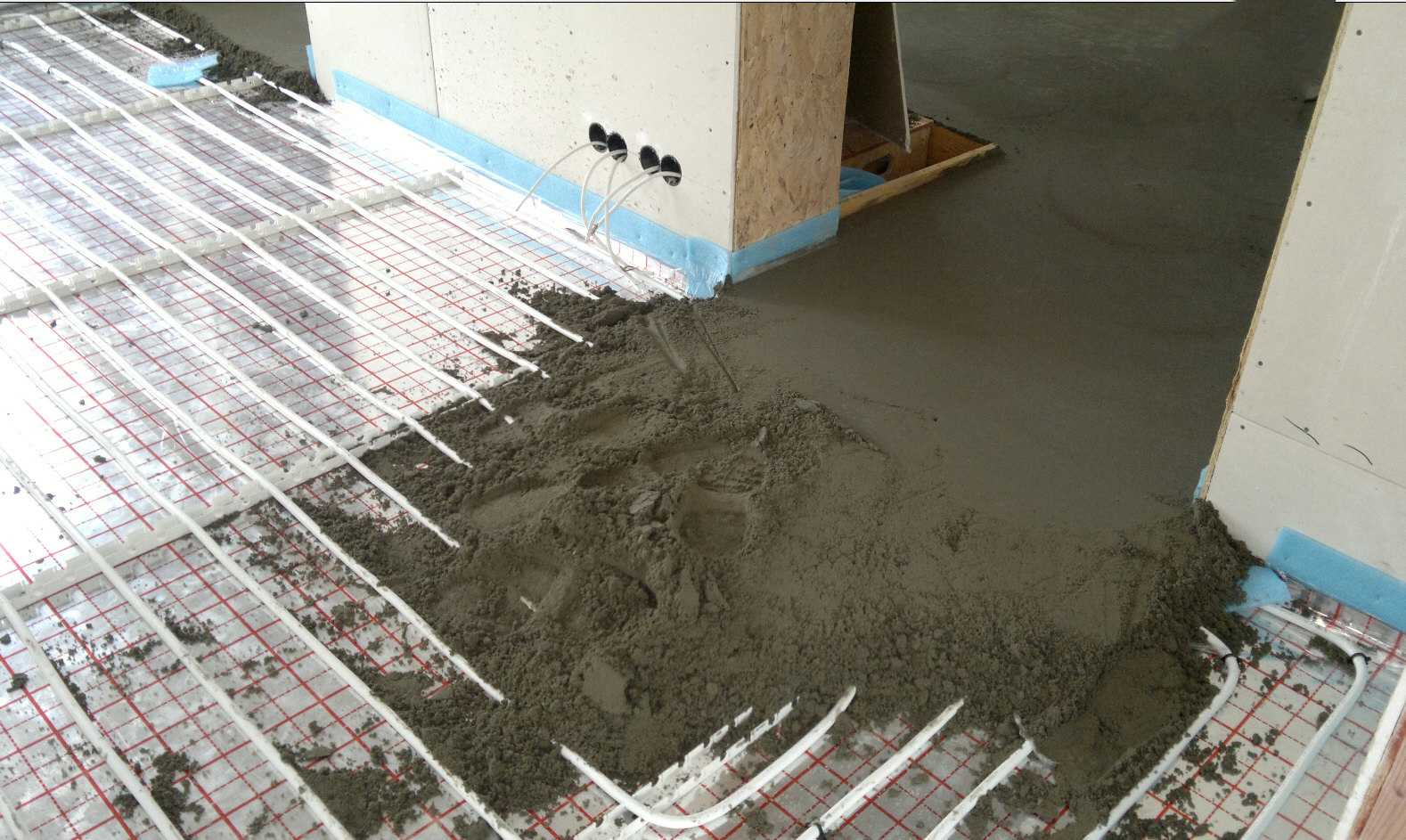 Имеется два способа монтажа тёплого пола в помещении. Первый способ называется настильным, и представляет он собой настил из разнообразных материалов (полистирол или древесина). Его достоинством является простота и высокая скорость монтажа. Второй вариант называется бетонным. Для его монтажа понадобится укладывать не только отопительные трубопроводы на пол, но ещё и укладывать утеплитель, а также заливать бетонную стяжку. В материале рассмотрим второй вариант монтажа тёплого пола.