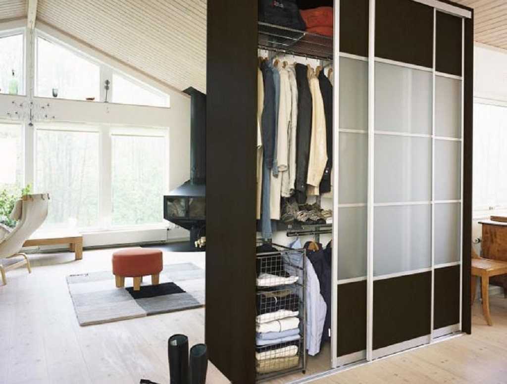 Просто поставить шкаф поперек, чтобы разделить комнату — неудачная идея. Чтобы он смотрелся органично, его нужно «привязать» к пространству. Обыграть цвет и стиль интерьера, подчеркнуть в его оформлении элементы отделки.