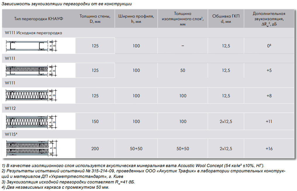 Таблица из справочника Блази, по которой можно примерно посчитать звукоизоляцию и подобрать конструкции.