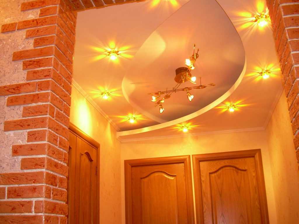 Современные производители предлагают широкий ассортимент модных потолочных светильников в прихожую. Среди разнообразия представлены роскошные люстры, привлекательные точечные лампы встроенного типа.