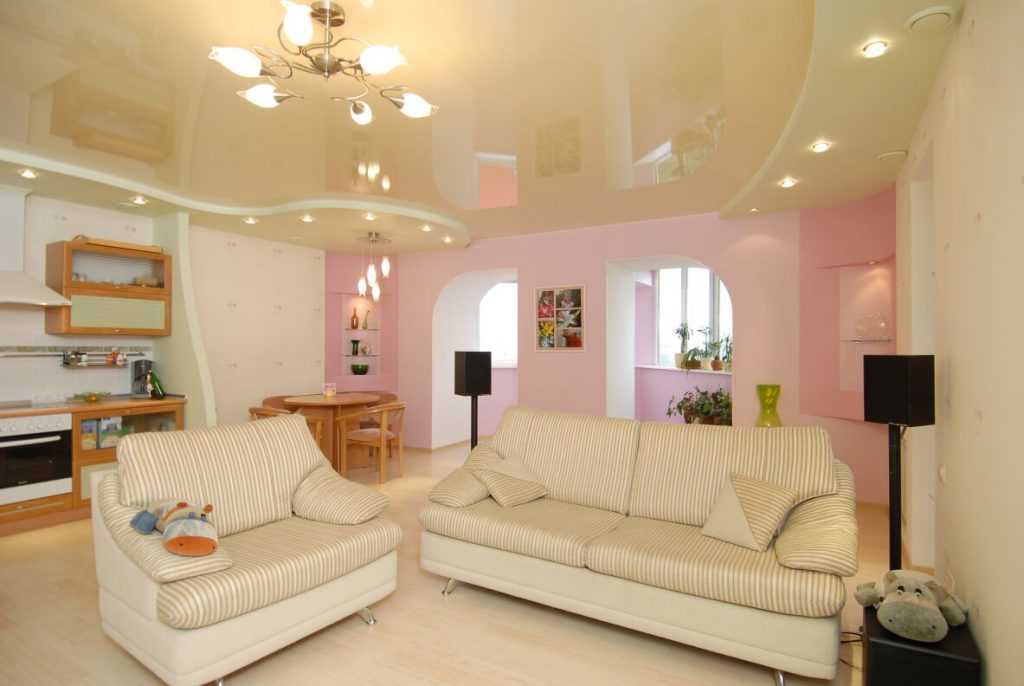 - сделать подвесные или натяжные потолки с точечными светильниками по периметру. Они зрительно увеличат помещение и сделают его уютнее;
