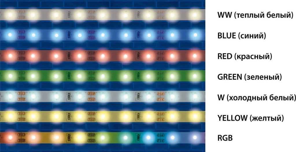 - Подсветка может быть не только белой или желтой – светодиодные ленты выпускаются в различных цветовых вариациях.