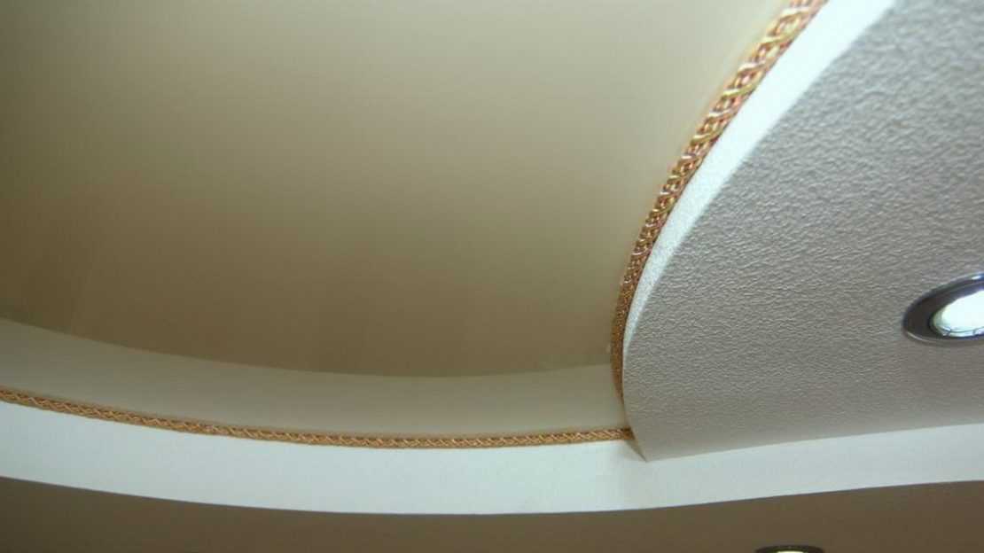Вместо маскировочной ленты для сокрытия щели между натяжным покрытием и стеновой поверхностью можно использовать декоративный шнур для натяжных потолков. По сути, это витой канат, который представлен в продаже широким ассортиментом расцветок и вариантов декоративного оформления. Его цена вполне приемлемая и составляет 1-1,5 доллара за погонный метр.