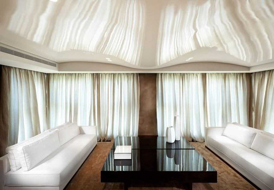 В основном данный вид потолков устраивают в ванных комнатах и на кухне, но все чаще они стали появляться и в жилых комнатах.